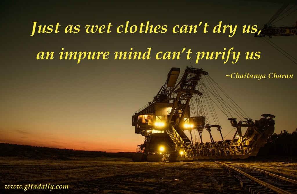 Just as wet clothes can’t dry us, an impure mind can’t purify us