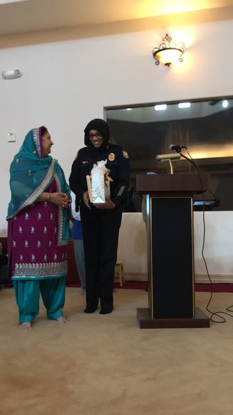 She assured the community that her department will always be there as and when a need arises. She was all praise for the Sikh community and pointed out several community members whom she had interacted at a personal level in the past. She was then honored by Mrs. Saranjit Kaur Saini and presented with couple of books about basics of Sikh faith for which she felt greatly obligated.
